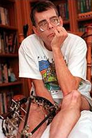 On June 19, 1999 at about 4:30 p.m., King was walking on the shoulder of Route 5, in Lovell, Maine. Driver Bryan Smith, distracted by an unrestrained dog moving in the back of his minivan, struck King, who landed in a depression in the ground about 14 feet from the pavement of Route 5. According to Oxford County Sheriff deputy Matt Baker, King was hit from behind and some witnesses said the driver was not speeding, reckless, or drinking. King was conscious enough to give the deputy phone numbers to contact his family but was in considerable pain. The author was first transported to Northern Cumberland Hospital in Bridgton and then flown by helicopter to Central Maine Medical Center, in Lewiston. His injuries, a collapsed right lung, multiple fractures of his right leg, scalp laceration and a broken hip, kept him at CMMC until July 9. His leg bones were so shattered doctors initially considered amputating his leg, but stabilized the bones in the leg with an external fixator. After five operations in ten days and physical therapy, King resumed work on “On Writing” in July, though his hip was still shattered and he could only sit for about forty minutes before the pain became worse. Soon it became nearly unbearable.