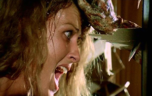 Several of Fulci’s movies released in America were censored by the film distributor to ensure an R rating (such as The Beyond, which was originally released on video in edited form as “Seven Doors of Death”) or were released Unrated in order to avoid an X-rating (as with “Zombie” and “House by the Cemetery”) which would have greatly restricted the films’ target audiences to adults. The unrated films often played worldwide in drive-ins and grindhouses to hordes of delighted teenagers and horror fanatics. Many of Fulci’s horror films tend to contain “injury to the eye” sequences, in which a character’s eyeball is either pierced or pulled out of its socket, usually in lingering, close-up detail.