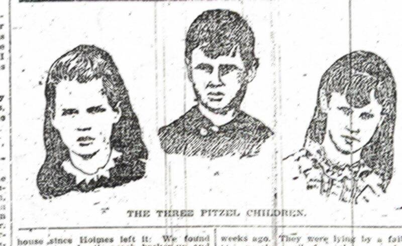 Pitezel had agreed to fake his own death so that his wife could collect on the $10,000 policy, which she was to split with Holmes and the shady attorney, Howe. The scheme, which was to take place in Philadelphia, was that Pitezel should set himself up as an inventor, under the name B.F. Perry, and then be killed and disfigured in a lab explosion. Holmes was to find an appropriate cadaver to play the role of Pitezel. Holmes instead killed Pitezel. Forensic evidence presented at Holmes’s later trial showed that chloroform was administered after Pitezel’s death, presumably to fake suicide. (Pitezel had been an alcoholic and chronic depressive.) Holmes proceeded to collect on the policy on the basis of the genuine Pitezel corpse. He then went on to manipulate Pitezel’s wife into allowing three of her five children (Alice, Nellie, and Howard) to stay in his custody. The eldest daughter and baby remained with Mrs. Pitezel. He traveled with the children through the northern United States and into Canada. Simultaneously, he escorted Mrs. Pitezel along a parallel route, all the while using various aliases and lying to Mrs. Pitezel concerning her husband’s death (claiming that Pitezel was in hiding in South America) as well as lying to her about the true whereabouts of her other children—they were often separated by only a few blocks. A Philadelphia detective, Frank P. Geyer, had tracked Holmes, finding the decomposed bodies of the two Pitezel girls in Toronto buried in the cellar of 16 St. Vincent Street. He then followed Holmes to Indianapolis, where Holmes had rented a cottage. Holmes was reported to have visited a local pharmacy to purchase the drugs which he used to kill Howard Pitezel, and a repair shop to sharpen the knives he used to chop up the body before he burned it. The boy’s teeth and bits of bone were discovered in the home’s chimney.