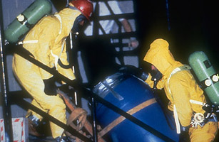 On July 22, 1991, Dahmer lured another man, Tracy Edwards, into his home. According to the would-be victim, Dahmer struggled with Edwards in order to handcuff him, but ultimately failed to cuff his wrists together. Wielding a large butcher knife, Dahmer forced Edwards into the bedroom, where Edwards saw pictures of mangled bodies on the wall and noticed the terrible smell coming from a large blue barrel; the barrel was filled with potent acid which dissolved human bodies to sludge for disposal via the apartment toilet. Edwards punched Dahmer in the face, kicked him in the stomach, ran for the door and escaped. Running through the streets with handcuffs still hanging from one hand, Edwards waved for help to a police car driven by Robert Rauth and Rolf Mueller of the Milwaukee police department. Edwards led police back to Dahmer’s apartment, where Dahmer at first acted friendly to the officers. However, Edwards remembered that the knife Dahmer had threatened him with was in the bedroom. When one of the officers checked the bedroom, he saw the photographs of mangled bodies and called for his partner to arrest Dahmer.