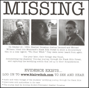 One day I was walking down the street and saw a missing poster with 3 people on it, that same night I saw an advertisement featuring the same 3 people. It peaked my interest but not enough to know more about it, I went on with my life of gaming, concerts and going to rock bars. I would hear people talk about the film and hear the usual things like “It’s the scariest thing I’ve ever seen” and the like. For some reason it never grabbed me and I’d dismiss it as I’d heard things like this with a-lot of other films that turned out to be nothing special at all.