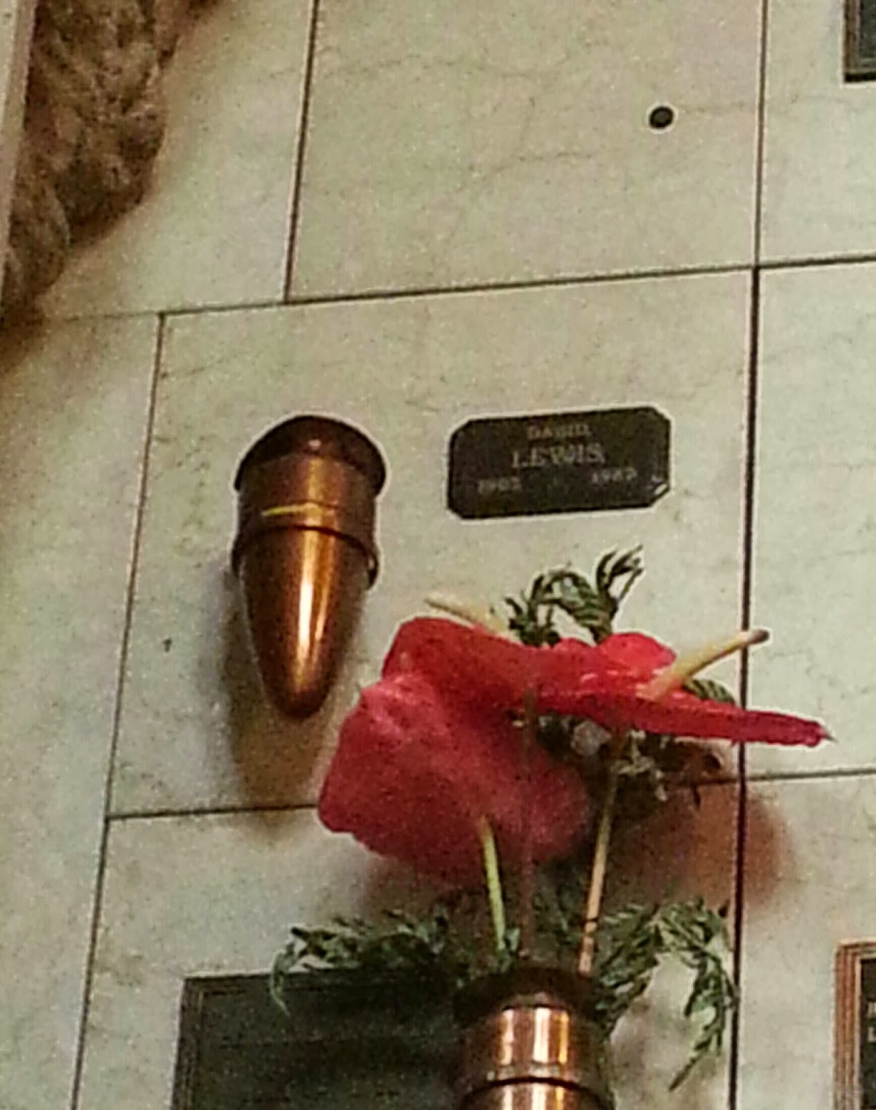 Whale was cremated per his request and his ashes were interred in the Columbarium of Memory at Forest Lawn Memorial Park, Glendale. Because of Whale’s habit of periodically revising his date of birth, his niche lists the incorrect date of 1893. When his long-time companion David Lewis died in 1987, his executor and Whale biographer James Curtis had his ashes interred in a niche across from Whale’s.