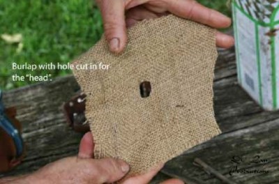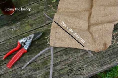 Size the burlap: Set one corner at the fork, and measure the diagonal along the arm.