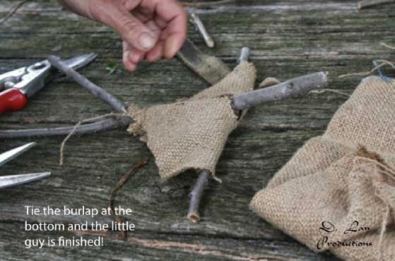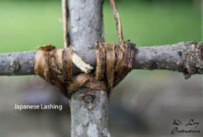 Tie the “head” to the cross piece and to the intercept of the “X”. These don’t have any cloth, and you have to do a lot more tying.