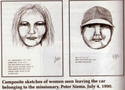 Marion County sheriff’s deputies found the car where the women had left it. It was a 1988 Pontiac Sunbird, grey with four doors. The glass in the front doors, as well as the wind-shield, was smashed. There were apparent bloodstains throughout the interior, and the license plate was missing. A computer search based on the VIN number revealed that the car belonged to Peter Siems, who had disappeared on June 7 after leaving his home in Jupiter, Florida to visit relatives in Arkansas. Siems was a 65-year-old retired merchant seaman who devoted much of his time to a Christian outreach ministry. John Wisnieski of the Jupiter Police, who had been working the case since Siems was reported missing, sent out a nationwide teletype containing descriptions of the two women. He also sent a synopsis of the case and sketches of the women to the Florida Criminal Activity Bulletin. Then he waited. He was not optimistic about finding Siems alive.