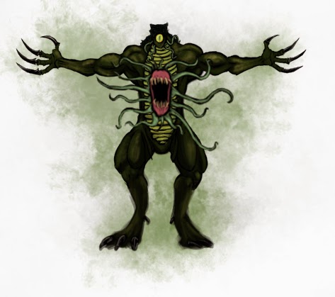 According to native folklore the creature has a series of unnatural characteristics related to other fantastic beings of Brazilian mythology. These include the creature only having one eye, long claws, caiman skin, backward feet and a second mouth on its belly.