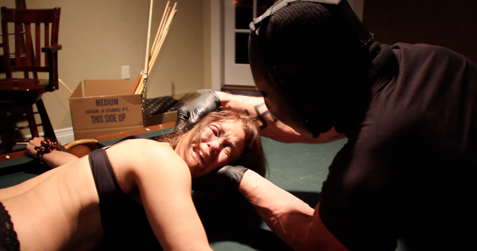 “Hate Crime” focuses on the terrorisation, mutilation, physical and sexual abuse and murder of the members of a Jewish family by the Neo Nazi thugs who invade their home. The physical and sexual abuse and violence are accompanied by constant strong verbal racist abuse. Little context is provided for the violence beyond an on screen statement at the end of the film that the two attackers who escaped were subsequently apprehended and that the one surviving family member was released from captivity. We have considered the attempt at the end to position the film as against hate-crime, but find it so unconvincing that it only makes matters worse.