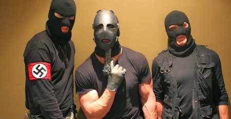 “Hate Crime” tells the story of a Jewish family, having just arrived in a new neighbourhood, who are recording their youngest son’s birthday celebrations on video when their home is suddenly invaded by a bunch of crystal-meth-crazed neo-Nazi lunatics.