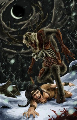 A Wendigo (also known as windigo, weendigo, windago, windiga, witiko, wihtikow, and numerous other variants including manaha) is a half-beast creature.