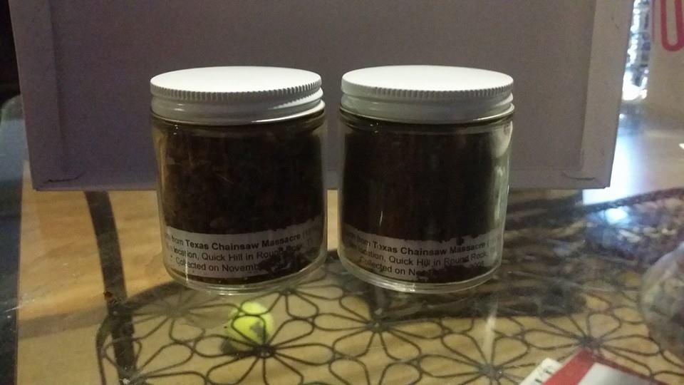 We collected a ton of foundation stones and we both took pictures of the land, the rocks and of ourselves. We talked about where various parts of the house were, where some film shots were done, etc. Then I started putting them on eBay to find out what the market value of them would be along with a certificate of authenticity that Gunnar would create and sign to go along with the stone. Ever since then, we’ve made them available through both his web site and my web site as well as his appearances around the world. Once I realized that this wasn’t such a crazy idea, it seemed only a natural progression to also add dirt from the location where the house used to be as well as asphalt of the road where Gunnar did his famous Chainsaw Dance at the end of the first film. One fan was able to explain to me why these items are sought after by Chainsaw fans by saying it’s not so much the value of the item itself that I’m selling. It’s the sentimentality that is tied to the film that is worth money to the fan.