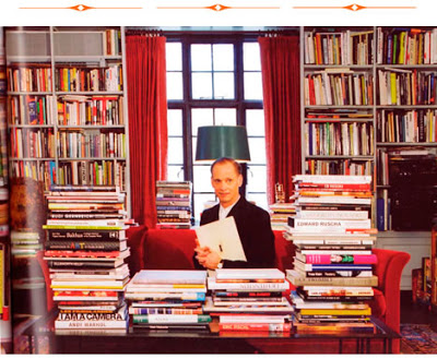 “Bookshelves line the walls but they are not enough. The coffee table, desk and side tables are heaped with books, as is the replica electric chair in the hall. They range from Taschen art tomes such as The Big Butt Book to Jean Genet paperbacks and a Hungarian translation of Tennessee Williams with a pulp fiction cover. In one corner sits a doll from the horror spoof Seed of Chucky, in which Waters appeared. It feels like an eccentric professor’s study, or a carefully curated exhibition based on the life of a fictional character.”