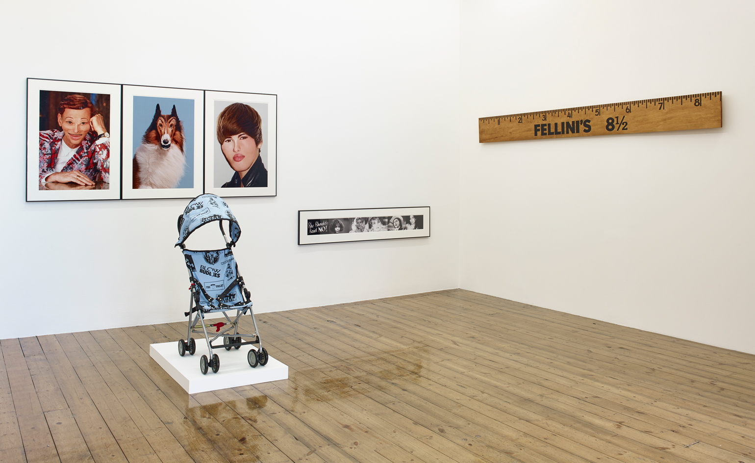Waters’ pieces are often comical, such as “Rush” (2009), a super-sized, tipped-over bottle of poppers (nitrite inhalants) and “Hardy Har” (2006), a photograph of flowers that squirts water at anyone who traverses a taped line on the floor. Waters has characterized his art as conceptual, saying that: