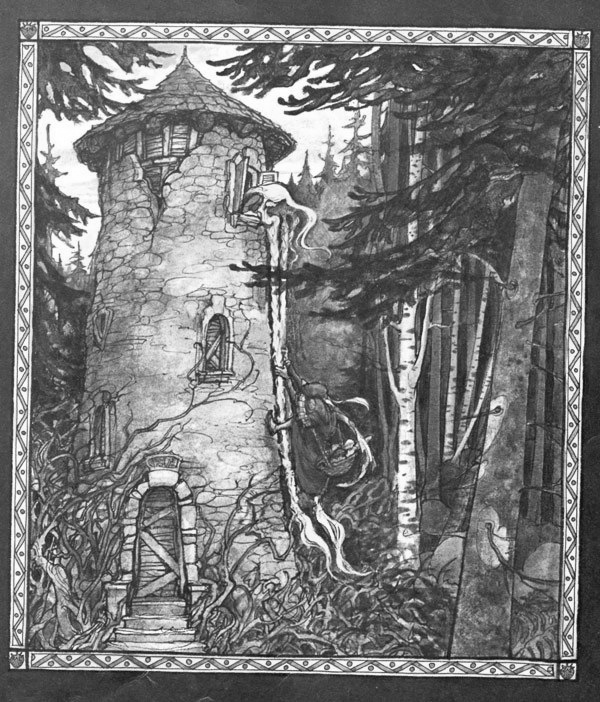 In the Grimm version, after ending up pregnant, the witch cuts off Rapunzel’s hair and magically transports her to a far away land where she lives as a poor, homeless beggar with two children she cannot support. The witch also manages to lure the prince up to the top of the tower and push him off, where some thorn bushes break his fall but also gouge out his eyes.