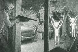 On the evening of August 21, 1955, five adults and seven children arrived at the Hopkinsville police station claiming that small alien creatures from a spaceship were attacking their farmhouse and they had been holding them off with gunfire “for nearly four hours“. Two of the adults, Elmer Sutton and Billy Ray Taylor, claimed they had been shooting at “twelve to fifteen” short, dark figures who repeatedly popped up at the doorway and peered into the windows.