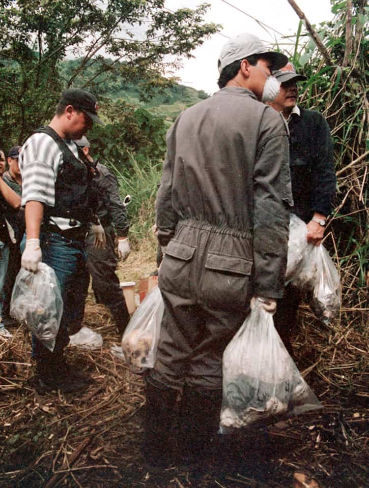 The children may have suspected that something was wrong once they arrived but were immediately tied up. Garavito could not stop himself even in dangerous situations. On the early afternoon of June 8, 1996, a boy went missing in the town of Boyaca. He followed Garavito on his (the boy’s) own bike so no violence had taken place. The corpse was found 5 days later decapitated with the severed penis stuck inside of the mouth. The mother of the boy had immediately started a search, and found that the boy had last been seen in a local shop with some other boys and a stranger who bought them sweets. The stranger was identified as Garavito who stayed in town. He was questioned by the police but stated that he sure bought the children sweets but then left alone. Approximately 4 days later, Garavito killed a 13-year old boy in the close by town Pereira. Clusters of bodies had begun popping up all over Colombia, yet authorities did not take much notice until 1997, when mass graves were uncovered. That gruesome discovery, initially thought by local authorities to be the work of a satanic cult, prompted authorities to create a nationwide task force that began to encounter similarities between cases across the country as these killings were not confined to a specific area.
