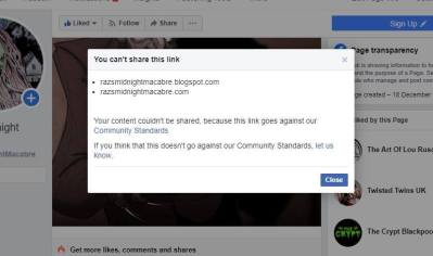As you can imagine this has hit my blog hard as I have nowhere to post my blog links, Facebook has also taken the step of not allowing anything to be shared on the page, including photos, yet I can still post photos, videos etc.