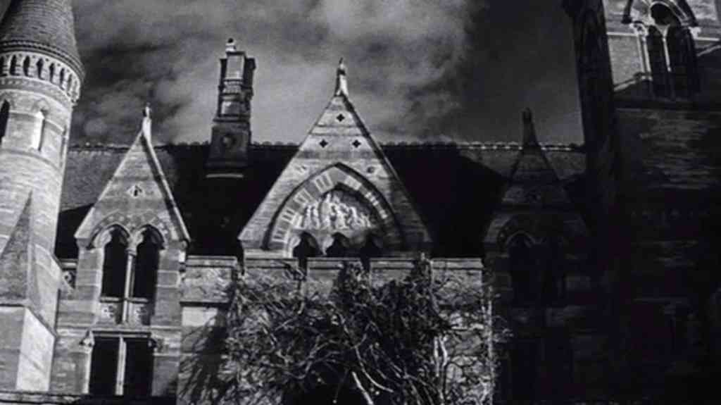 According to Robert Wise, the spiral staircase provided some unique challenges. “It was scary when you were up on that thing and it was rocking around. The one shot we did on it that fascinates people the most is when the camera is at the bottom and goes up. We designed the banister of the stairway to be so wide and thick that it would fit a small rig with wheels on it – a little, light dolly that would hold a hand-held camera. We had our camera on that and we had a control wire underneath, all the way down. We simply took the camera up to the top on this rig, started it, rolled it down, and then reversed the film. It was all done on that balustrade.”