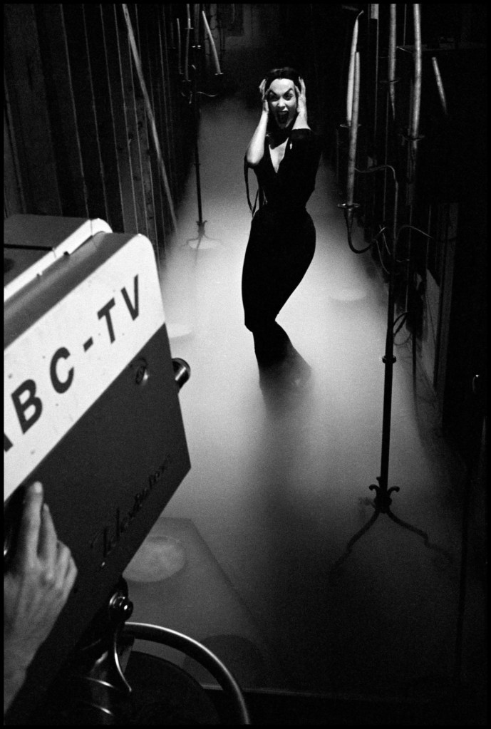 She also ran as a candidate for Night Mayor of Hollywood with a platform of “dead issues”. In another publicity stunt, KABC had her cruise around Hollywood in the back of a chauffeur-driven 1932 Packard touring car with the top down, where she sat, as ‘Vampira’, holding a black parasol. The show was an immediate hit, and in June 1954 she appeared as ‘Vampira’ in a horror-themed comedy skit on “The Red Skelton Show” along with Béla Lugosi, and Lon Chaney, Jr.. That same week Life magazine ran an article on her, including a photo-spread of her show-opening entrance and scream. A kinescope of her “The Red Skelton Show” appearance was discovered in 2014.
