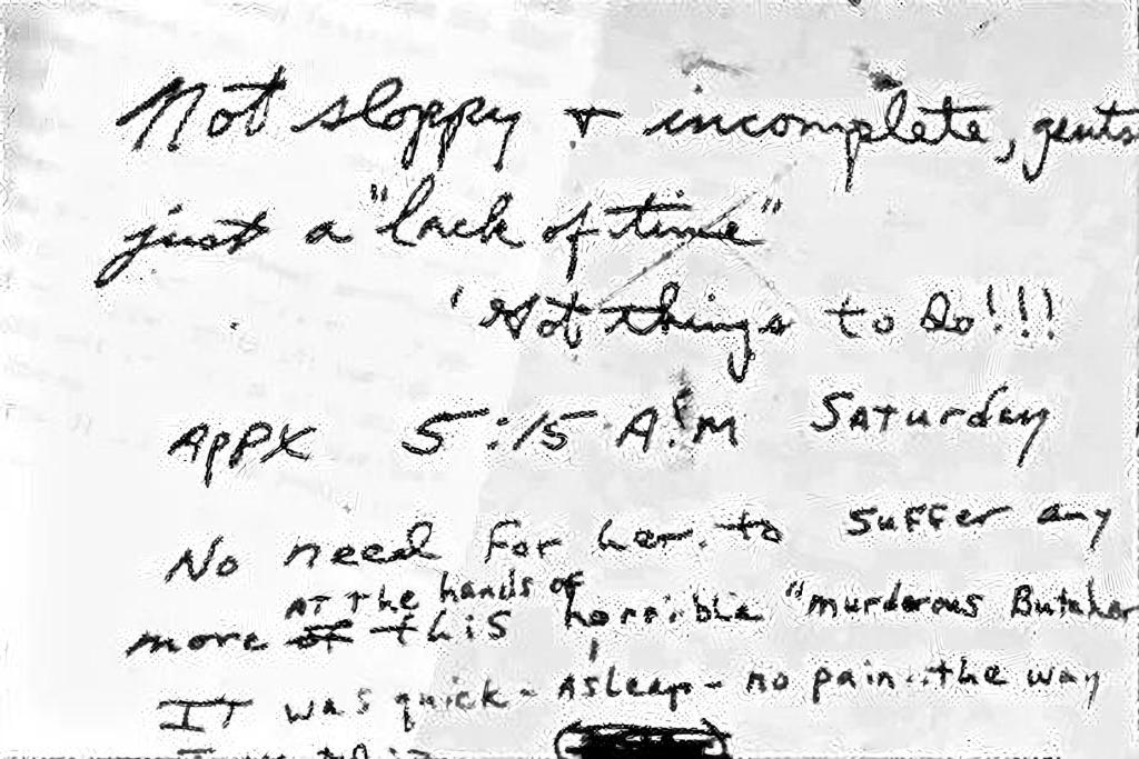 Appx. 5:15 A.M. Saturday. No need for her to suffer any more at the hands of this horrible “murderous Butcher”. It was quick—asleep—the way I wanted it. Not sloppy and incomplete, gents. Just a “lack of time”. I got things to do!!!