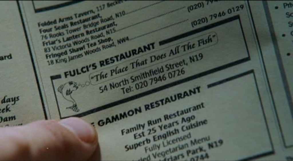 “Shaun Of The Dead” is a film full of Easter eggs (this may not even be the only one we see in this list) but here’s one I saw go over a lot of peoples heads, The name of the restaurant is ‘Fulci’s restaurant’, a reference to the “Godfather Of Gore” Lucio Fulci.
