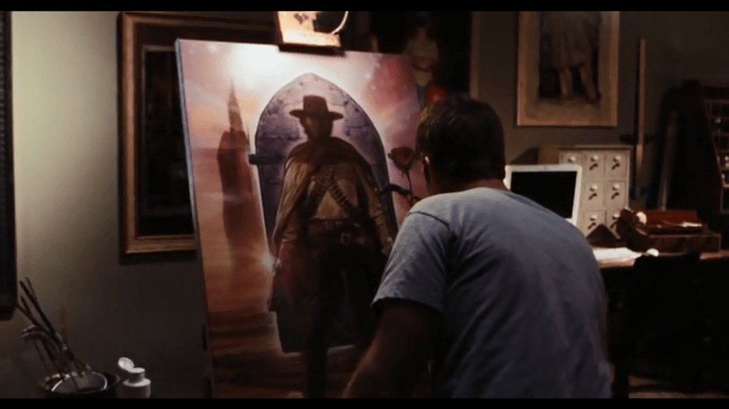 I’ve always felt that this one was for the Stephen King fans out there, what you see at the beginning of the film is Thomas Jane’s character ‘David’ doing a painting of ‘Roland’ from Stephen King’s “Dark Tower” series, a great one at that.