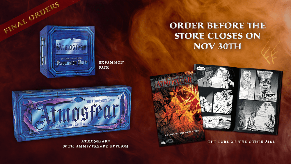 This special 30th Anniversary Kickstarter edition of Nightmare/Atmosfear not only pays homage to the origins of this unique video-meets-boardgame experience, it also expands on the original with deluxe game play extras and new custom pieces made especially for this campaign.
