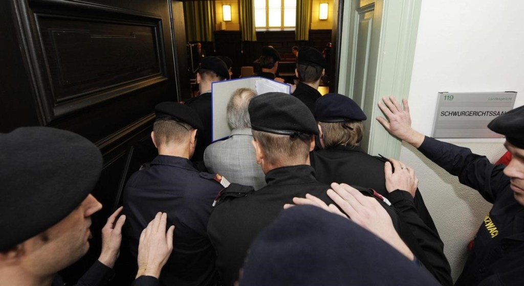 On November 13, 2008, authorities in Austria released an indictment against Josef Fritzl. He would stand trial for the murder of the infant Michael, who died shortly after birth, and face between 10 years and life imprisonment. He was also charged with rape, incest, kidnapping, false imprisonment and slavery, which carry a maximum 20-year term. Excerpts of Elisabeth’s diary were leaked to the media on March 11, 2009. Prosecutors confirmed that the diary was part of their evidence against Josef Fritzl. The trial of Josef Fritzl commenced on March 16, 2009, in the city of Sankt Pölten, presided over by Judge Andrea Humer. On day one, Fritzl entered the courtroom attempting to hide his face from cameras behind a blue folder, which he was entitled to do under Austrian law. After opening comments, all journalists and spectators were asked to leave the courtroom, whereupon Fritzl lowered his binder. Fritzl pleaded guilty to all charges with the exception of murder and grievous assault by threatening to gas his captives if they disobeyed him.