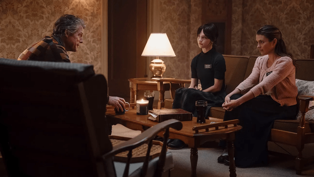 In order to keep Sophie Thatcher and Chloe East on their toes and engaged in the scene Hugh Grant would improvise and change lines like the moment Mr Reed mispronounced Angel Moroni’s name which caused Chloe East to improvise correct him.
