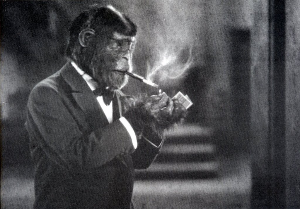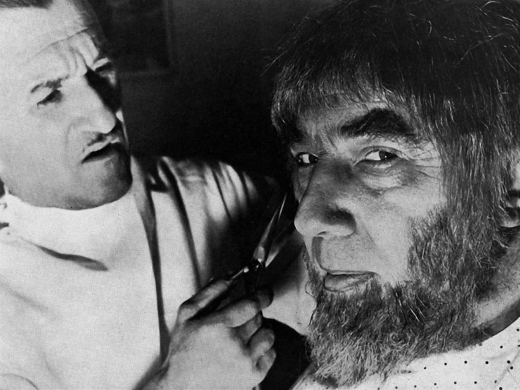 Jack Pierce was born Janus Piccoula on May 5, 1889 in Greece. After immigrating to the United States as a teenager, Pierce tried his hand at several careers, including a stint as an amateur baseball player where he achieved some notoriety as a shortstop in Chicago. In the 1920s, Pierce embarked on a series of jobs in cinema – cinema manager, stuntman, actor, even assistant director – which would eventually lead to his mastery of the field of makeup. The small-statured Pierce was never a ‘leading man’ – type, and he put his performing career aside to specialize in make-up for other performers. On the 1926 set of “The Monkey Talks”, Jack Pierce created the makeup for actor Jacques Lernier who was playing a simian with the ability to communicate.