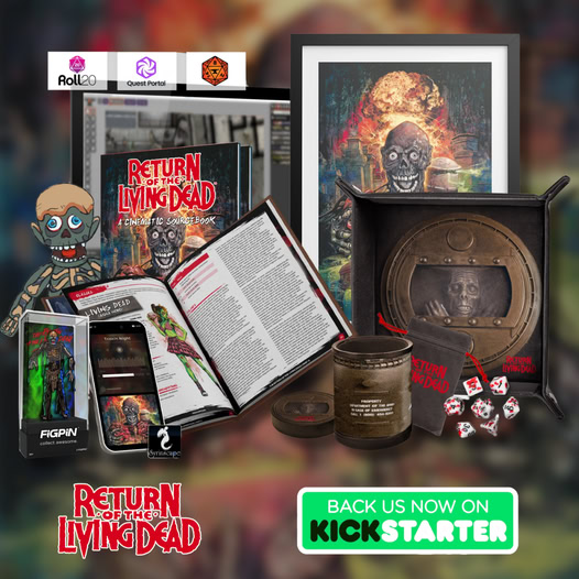 “The iconic 1985 film, Return of the Living Dead, was instrumental in defining the zombie genre. Our officially licensed tabletop roleplaying game, based on the Everyday Heroes™ system, celebrates the 40th anniversary of the Return of the Living Dead film franchise and provides endless adventure across 4 decades of Trioxin-fueled havoc.”